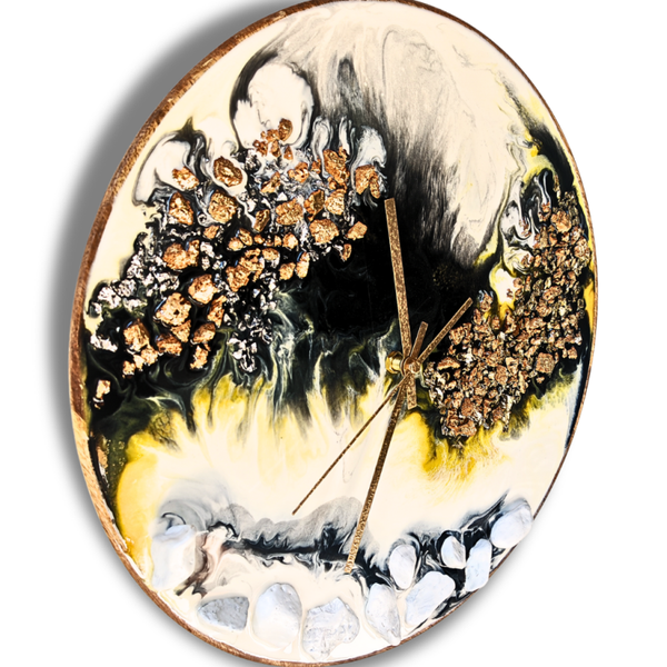 Diese handgefertigte Wanduhr ist ein wahres Kunstwerk, das in jedem Raum für einen besonderen Blickfang sorgt.